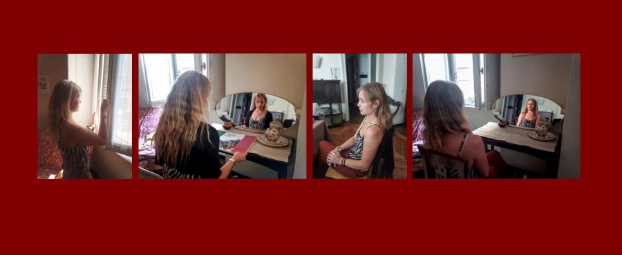 Bernadeta habla por teléfono, a través de sus palabras trata de dar fortaleza a quien la escucha, busca soluciones para otras mujeres que como ella son migrantes y se sienten perdidas en un país donde tienen que enfrentar un nuevo idioma, nuevas costumbres, todo un universo que muchas veces lo habían imaginado diferente.