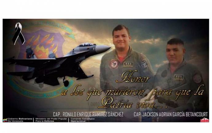 La tarde de este viernes 18, el Ministro Padrino López dio a conocer que fueron encontrados sin vida los cuerpos de los capitanes de la Aviación, Ronald Enrique Ramírez Sánchez y Jackson Adrián Rodríguez Betancourt, pilotos del Sukhoi siniestrado mientras custodiaba el espacio aéreo de Venezuela.