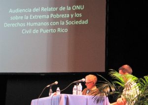 The United Nations’ (UN) relator heard a few Boricuas talk about poverty and human rights in Borikén on Sunday, December 10, 2017 at the Inter-American University Law School in Puerto Rico. Click on the following links to watch our videos: 1. https://youtu.be/1dX_39itozY 2. https://youtu.be/BCjp-pWbh84