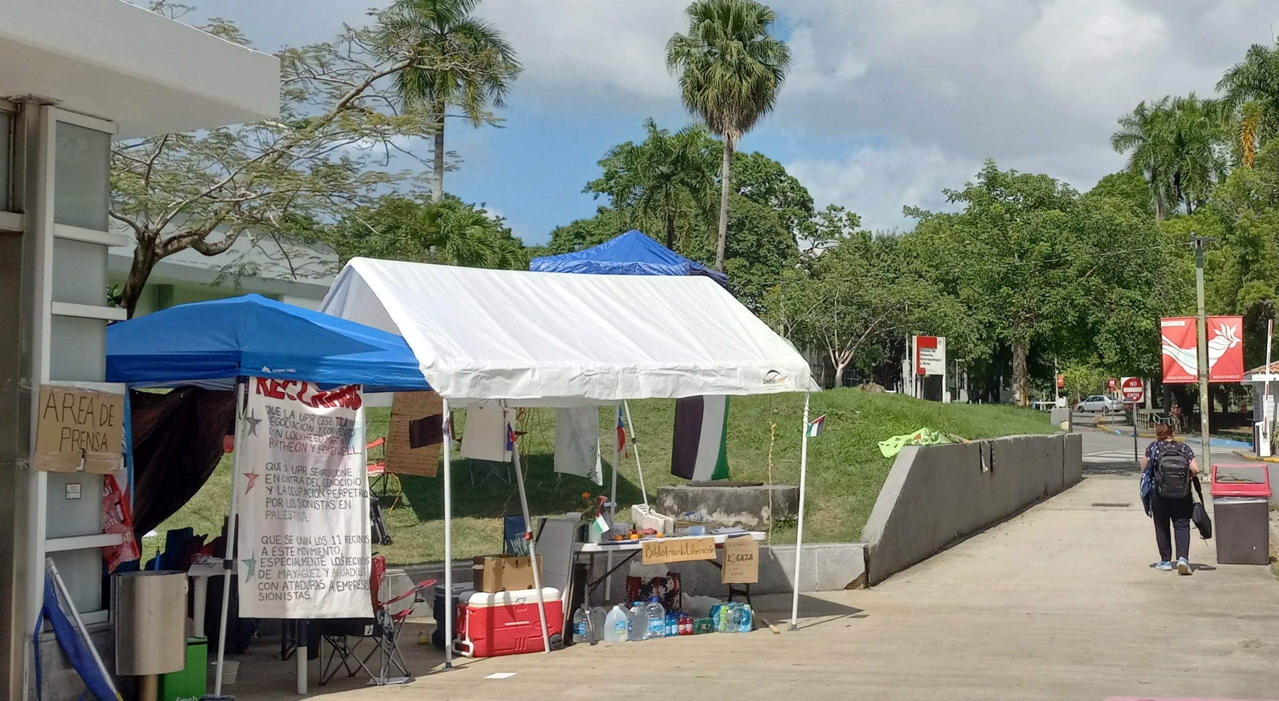 Se estableció hace aproximadamente 2 semanas en el Recinto de Rio Piedras de la Universidad de Puerto Rico el primer campamento en contra del genocidio del estado colono colonial de Israel en contra de le gente indígena de Palestina.