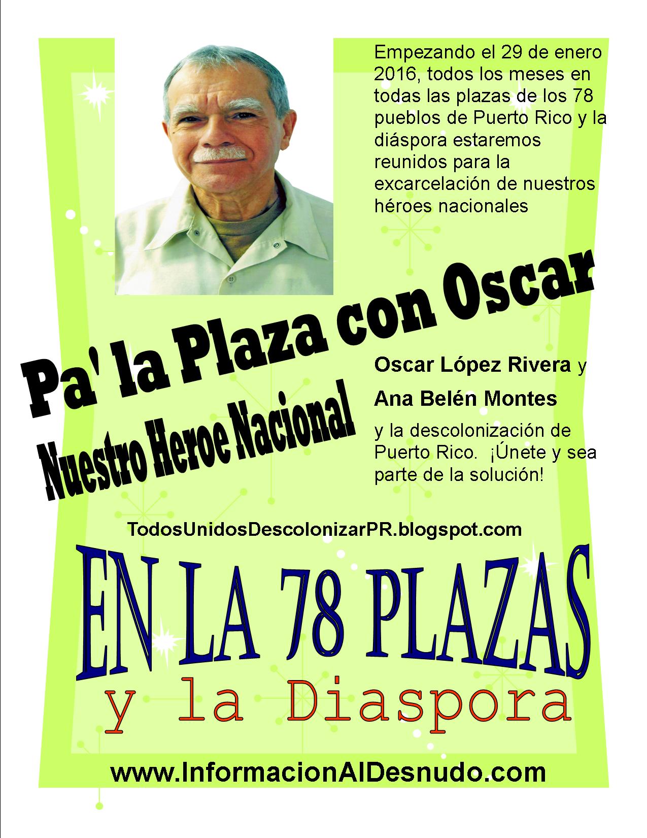 Estaremos reunidos en las plazas el 29 de enero de 2016, y todos los 29 de cada mes por la excarcelación de nuestros héroes nacionales Oscar López Rivera y Ana Belén Montes hasta su regreso a casa. ¡El día de sus excarcelación, estaremos en nuestras plazas para darles sus muy bien merecido bienvenidos!