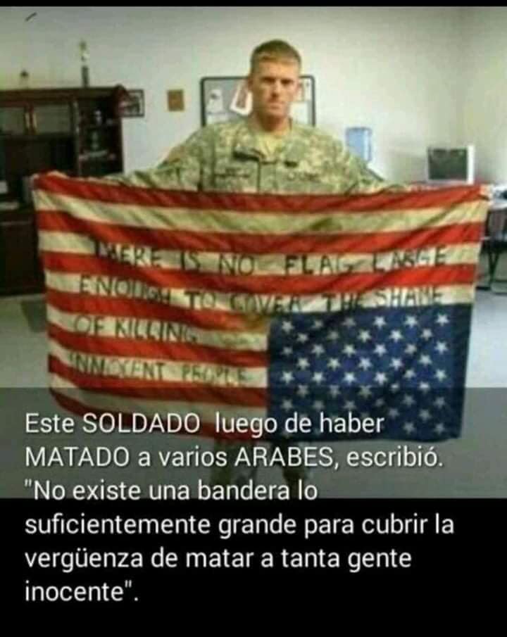 This picture is about an honest US soldier who is ashamed about what he was ordered to do in the name of the defending democracy and freedom around the world.