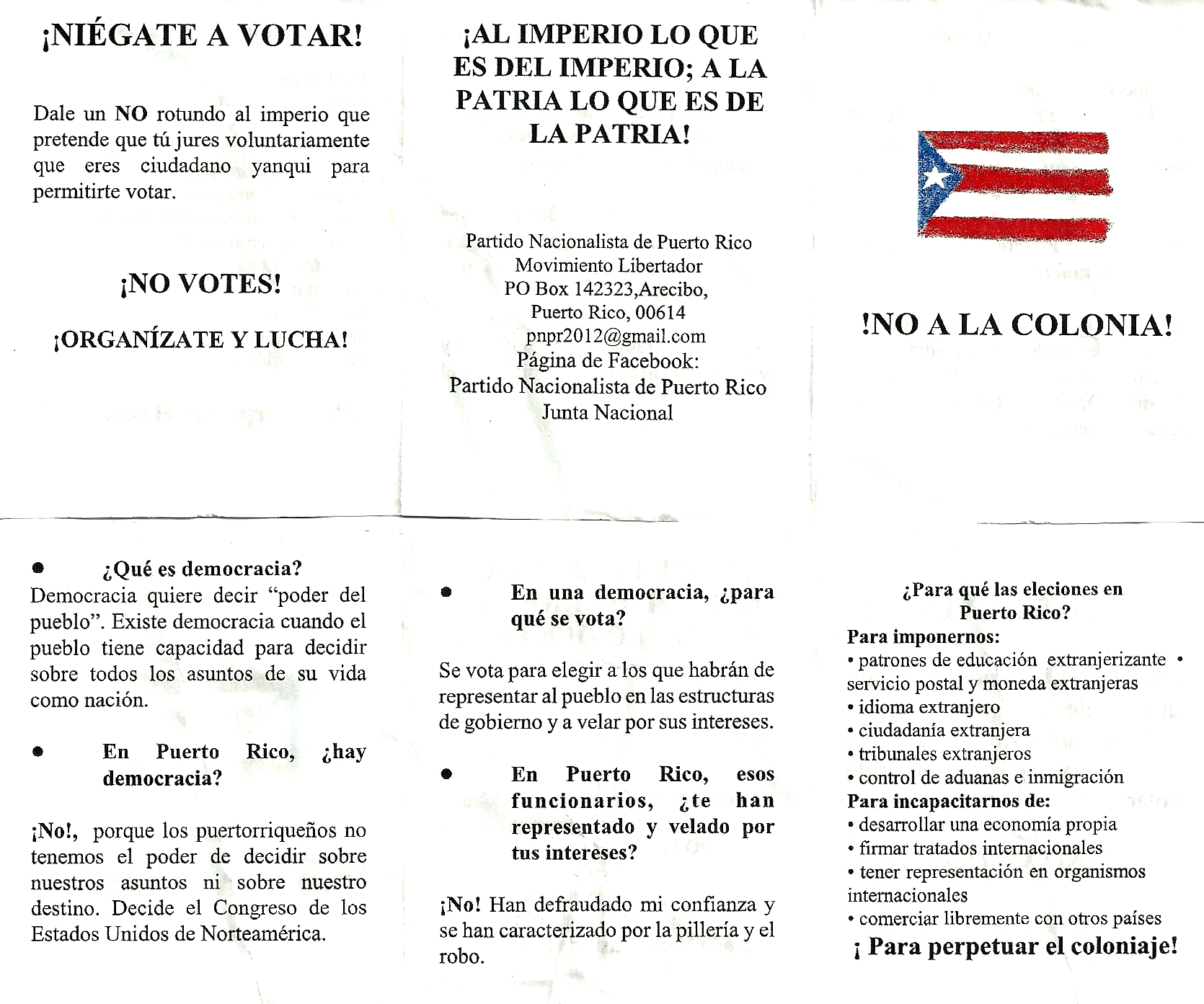 A comrade from the Puerto Rico Nationalist Party gave me a little flyer during the march. For being such a tiny flyer, it contains a giant truth! Let’s see: Spanish version #1