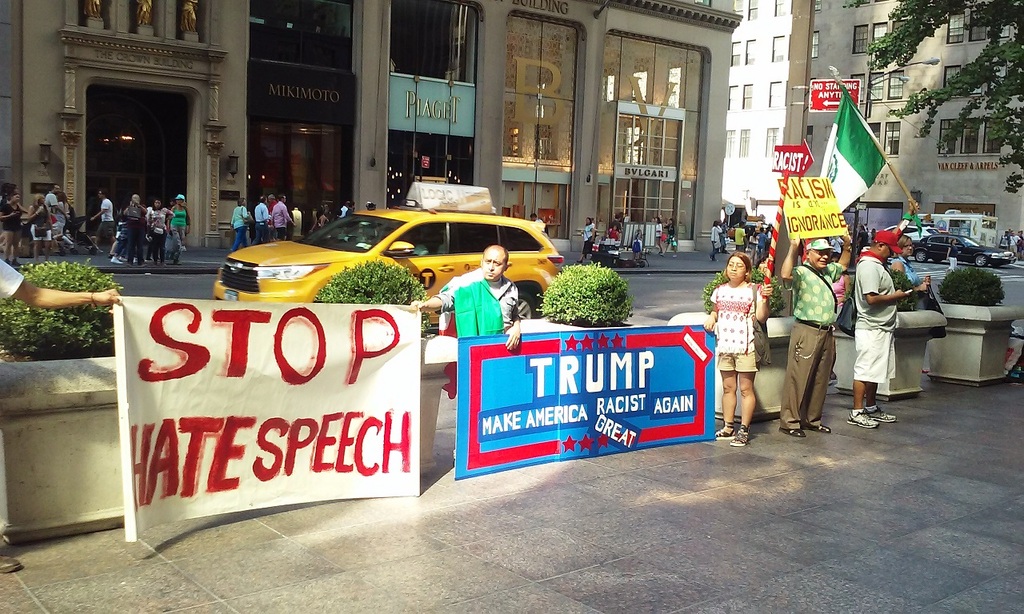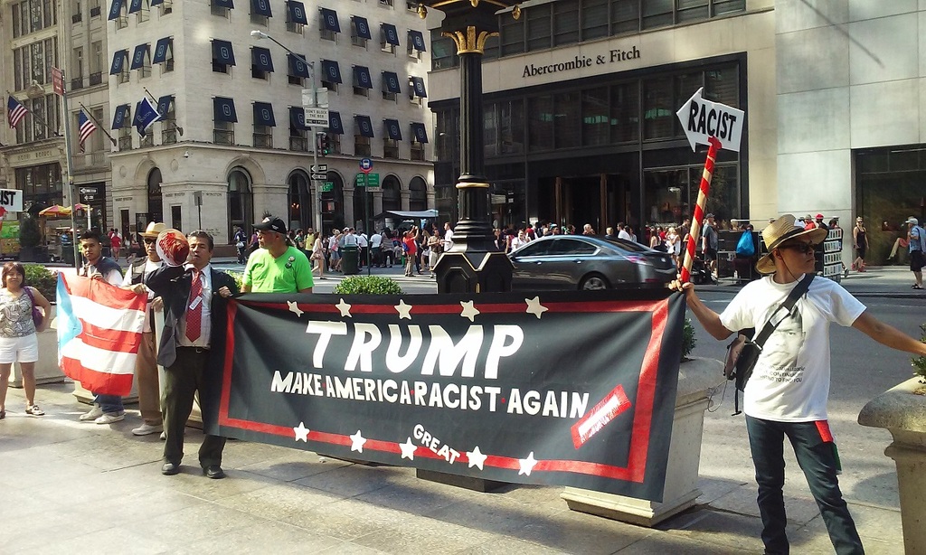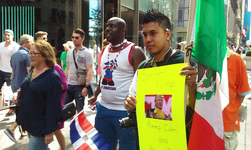 Algunas imágenes de la protesta del domingo 09 de Agosto de 2015 convocada por AyotzinapaNY en protesta contra las expresiones racistas de Donald Trum. En la misma participaron otros latinos y algunos dominicanos que terminaban de participar en su desfile anual se unieron espontáneamente.