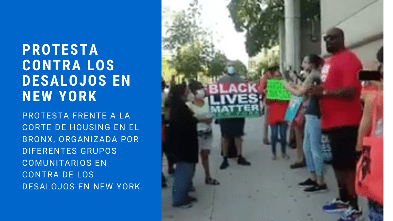 Protesta frente a la corte de Housing en el Bronx, organizada por diferentes grupos comunitarios en contra de los desalojos en New York City.